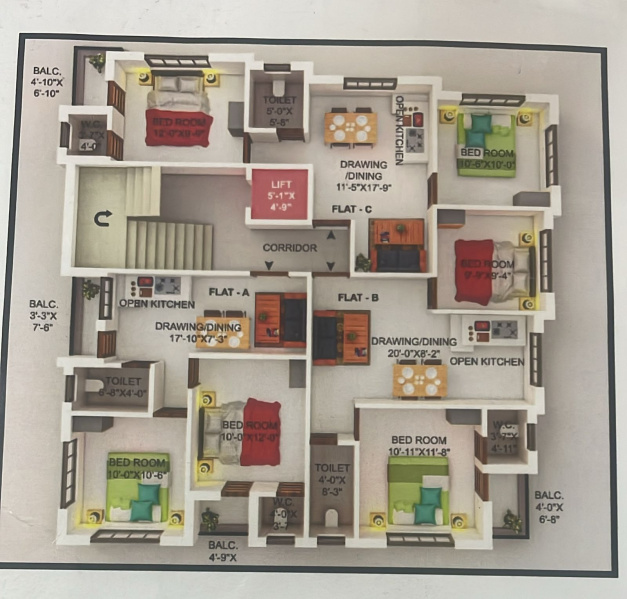This new 2 BHK flat located in A-Zone, Durgapur is a perfect blend of modern design and comfort. The property spans across a total built-up area of 905 sq.ft. and is situated on the 3rd floor of a well-maintained building with a total of 3 floors.